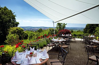 Wir sind bekannt für Atmosphäre, Entspannung und erstklassige Gastronomie. Genießen Sie den Panoramablick und den Charme unseres modernen First-Class-Hotels. Komfortzimmer, größtenteils klimatisiert, mit allen Annehmlichkeiten für Ihr Wohlbefinden. Unser Wellnessbereich bietet Sauna, Ruheraum, Bibliothek, Solarium und Fitnessraum. 5 Tagungsräume mit modernster Technik bieten die idealen Voraussetzungen für Ihre Veranstaltung. Feiern Sie im Bankettsaal mit bis zu 120 Personen Ihre Familienfeier.