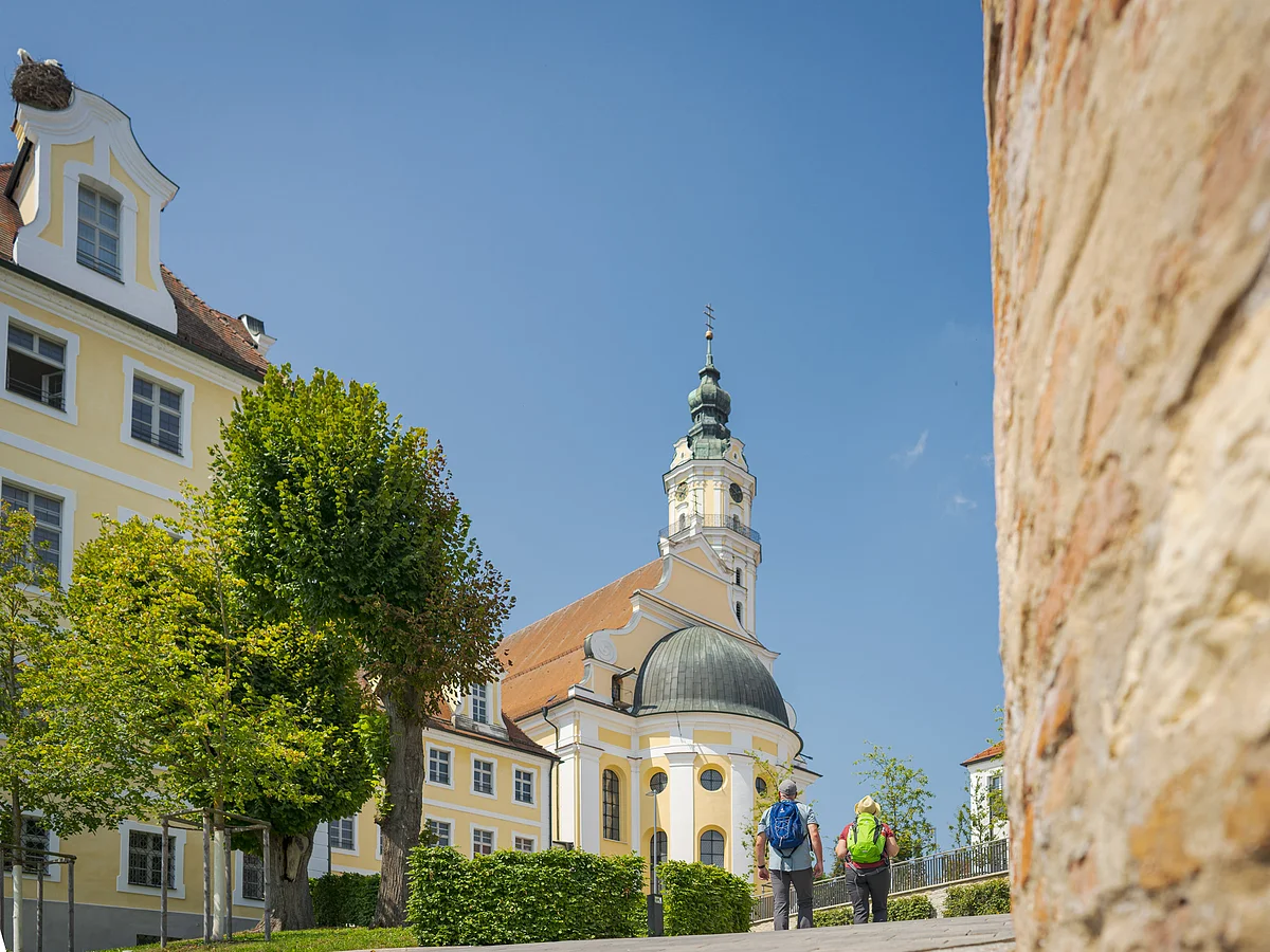 Imposante Klosteranlage mit spätbarocker Wallfahrtskirche in prachtvoller Stuckausstattung im Wessobrunner Stil von Franz Schmuzer. Wallfahrtsstätte aufgrund der in der Gruftkapelle aufbewahrten Original-Kreuzpartikel, die im Jahre 1030 aus Konstantinopel nach Donauwörth gebracht wurden. In der ehemaligen Klosterkirche befindet sich außerdem die Grabstätte der Maria von Brabant, Gemahlin des bayerischen Herzogs Ludwig II. dem Strengen. Im Klostergebäude selbst beeindruckt insbesondere der Gallussaal mit Deckenfresko des Donauwörther Rokokomalers Johann Baptist Enderle - leider nicht öffentlich zugänglich. Ludwig Auer, der das Kloster mit dem Erwerb vor dem Verfall gerettet hat, sicherte auch den Fortbestand durch Gründung der heutigen Stiftung Cassianeum.